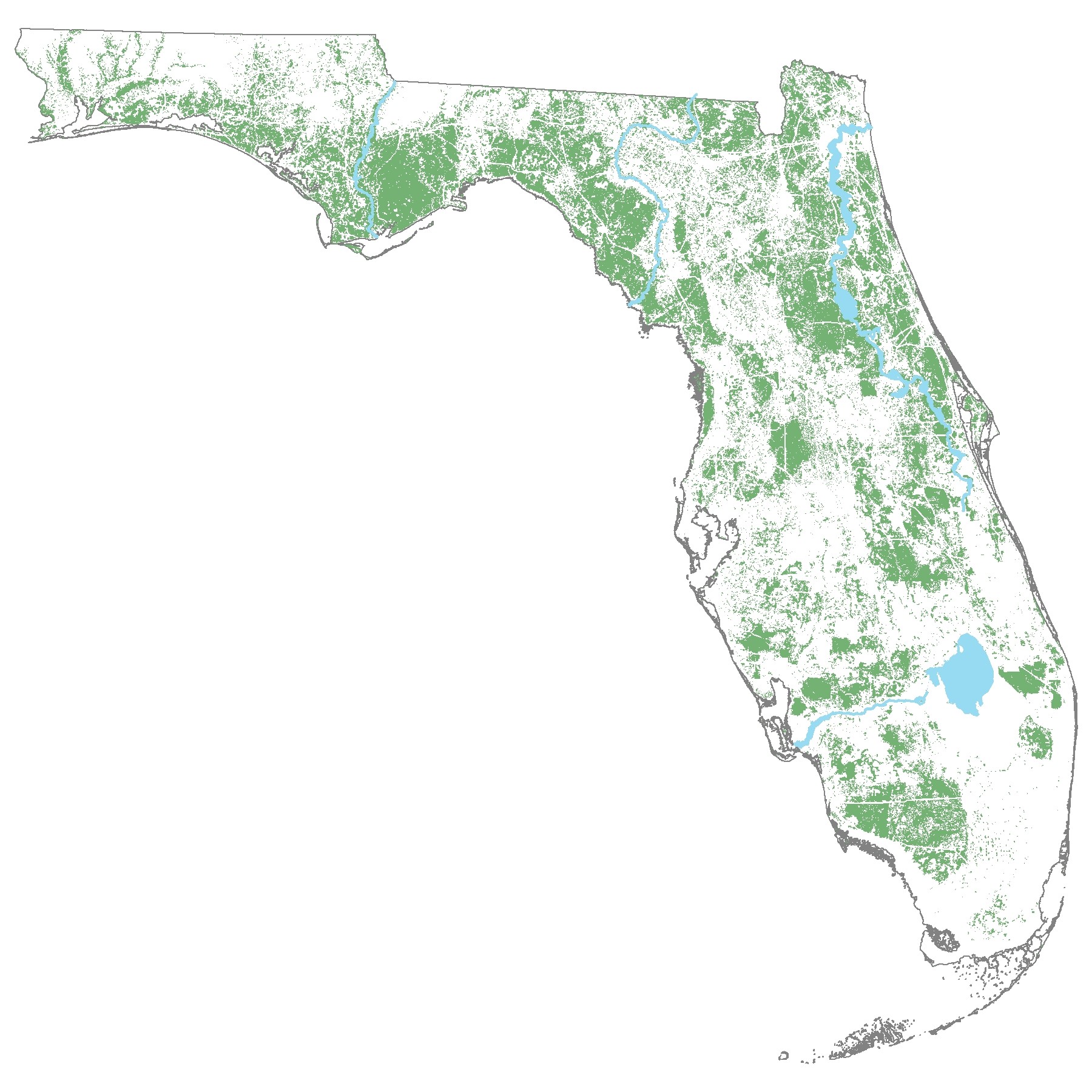 Description: Location data and environmental variables were used to develop a consensus model using Maxent and Mahalanobis distance to create a continuous raster for each model. Values above averaged thresholds from Area-Under-Curve and Boyce Index for each model were converted to a binary map that identifies black bear (Ursus americanus floridanus) habitat across Florida, USA. The publication provides two scales, one at the statewide scale and one at a regional Bear Management Unit scale, but this layer shows only the state-scale binary map using raster cell values of 0.530 or higher as stated in Poor et al. 2020.